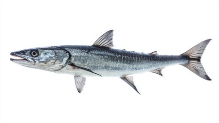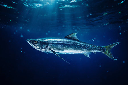 barracuda displays its distinct elongated body and sharp teeth highlighting the features that define this predatory fish species in a striking manner.