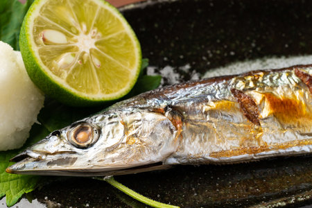 grilled pacific saury, sanma no shio yaki, japanese cuisine
