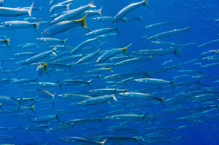 School of great barracudas in Red Sea near Brothers Islands, Egypt