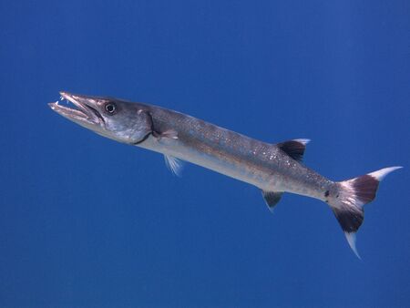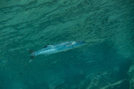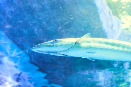 Predatory barracuda fish living in an aquarium. Children, artists and website designers are very fond to drawing such fish.