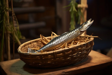 Bamboo-Encased Mackerel: An Exquisite Decorative Model - A Captivating Display in 3:2 Aspect Ratio