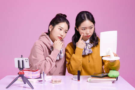 mz generation Asian Korean female hipster influencer, creator concept : who are worried about skin