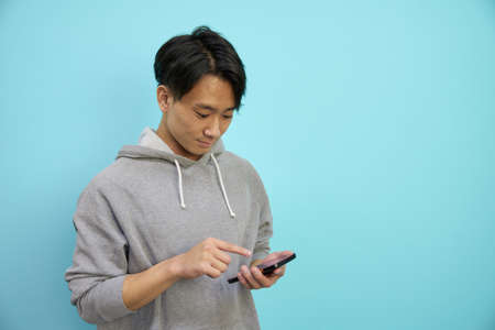 Asian man operating mobile phone