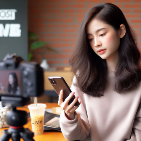 Food content creator blogger camera phone blog social media, producing and sharing content related to food channels online outlets vlogging culinary meal cooking