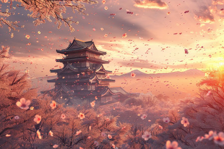 Beautiful Sunset Image of Osaka Castle in Osaka, Japan