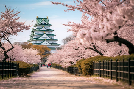 Beautiful Osaka castle with blooming cherry blossoms in Sakura spring season in Osaka, Japan