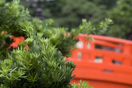 Japanese park in a green landscaping environment