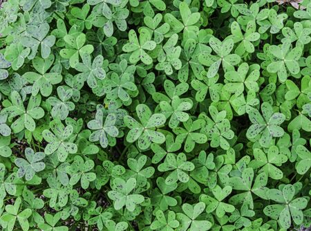 Dense layer of green Wood sorrel leaves growing in a Nordic forest