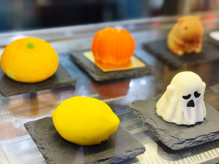Generative AI, Japanese traditional confectionery cake wagashi, various types of sweets