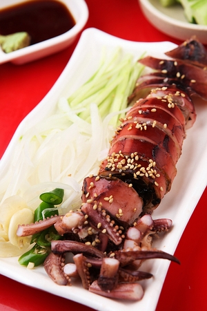 food made with squid. lightly poached food. Korean food culture