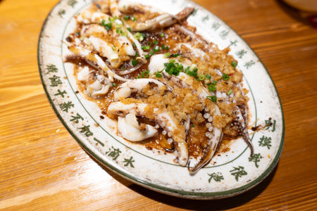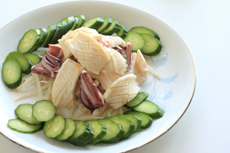 Chinese cuisine, boiled squid with cucumber for gourmet appetizer