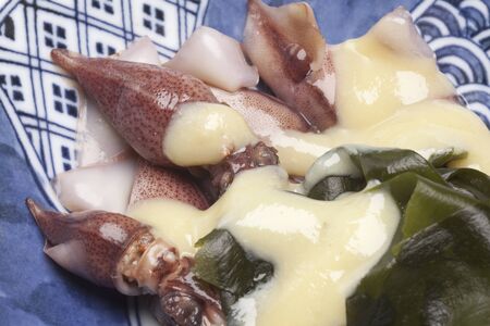 boiled firefly squid with vinegar miso, japanese cuisine