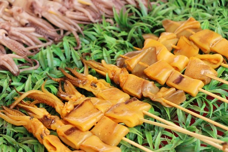 Grilled squid skewers sold in street food in China