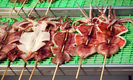 Grilled squid in a street stall
