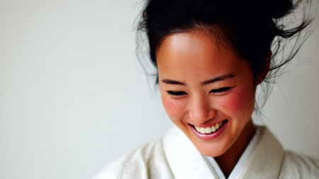 Serene Asian Woman in Traditional Kimono with Bun Hairstyle