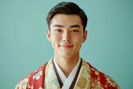 Asian young man in traditional kimono