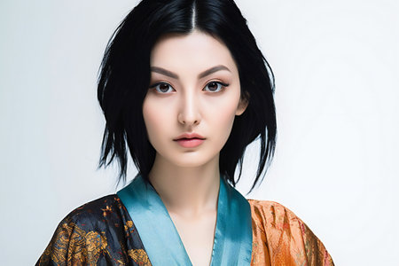Japanese super elegant woman portrait. Female pretty studio adult model. Generate Ai
