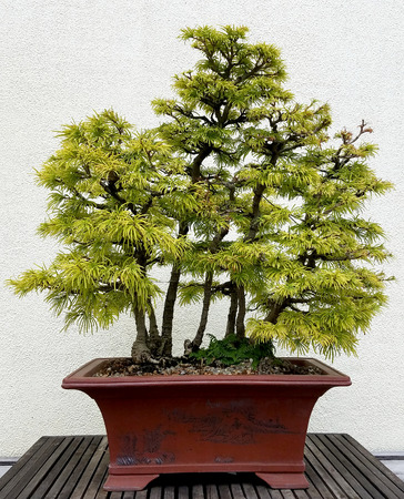 Miniature plant grown in a tray according to Japanese bonsai traditions