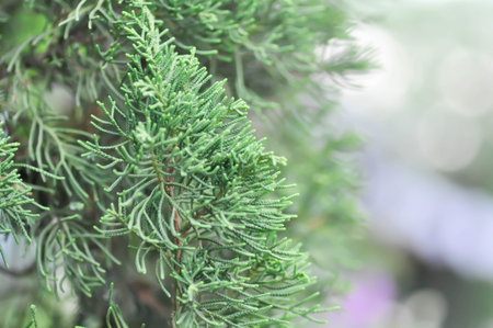 pine tree in blur background, Juniperus chinensis or Cupressaceae