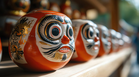 Daruma dolls lined up on festival stall