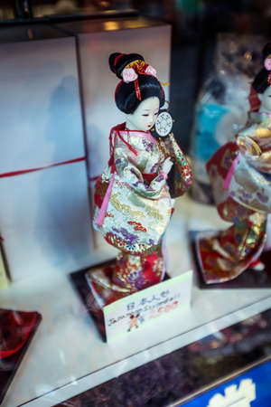 Matsumoto, Japan - January 08, 2020: Japanese Traditional Style Dressed Doll in the Souvenir Shop