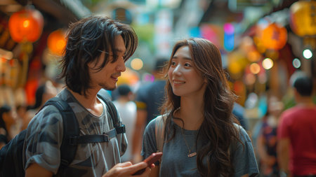 Young japanese couple spending time together in Tokyo