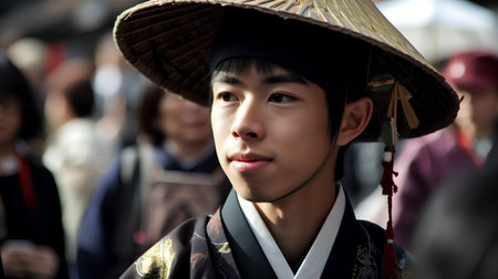Unidentified japanese man in traditional costume in Kagawa, Japan.