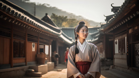 shot of a woman wearing traditional japanese clothing, created with generative ai