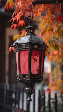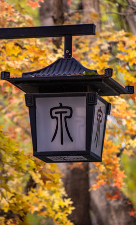 Antique Asian Temple Lantern with Ornate Golden Design Architecture