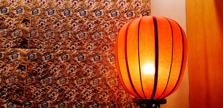 Red Chinese lamp on art background with copy space - Design, Beautiful Object and lighting device concept