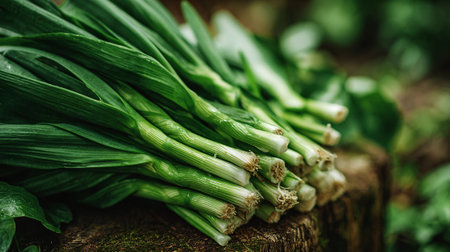 Vibrant Bundle of Freshly Harvested Ramps, a Springtime Foraged Delicacy