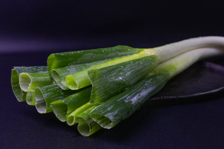 Japanese Fresh Green Scallion. Fresh Japanese Naganegi Green Scallion image.