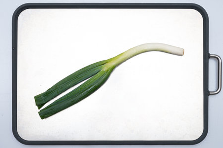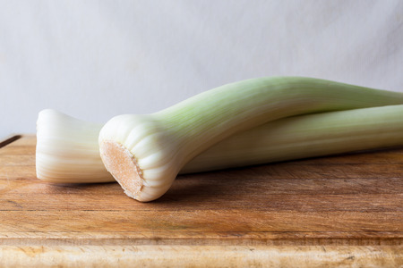 Leek in elongated shape. Trimmed leek. Spicy and sweet vegetables