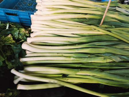 Fresh leek for sale at the local market in Bangkok, Thailand.