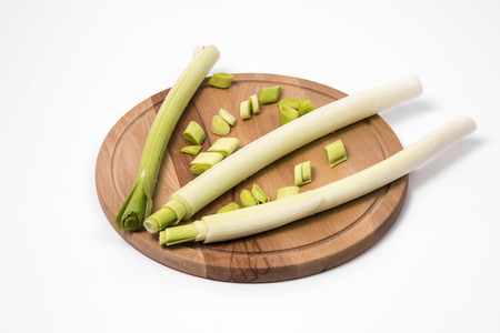 LEEK allium porrum AGAINST WHITE BACKGROUND