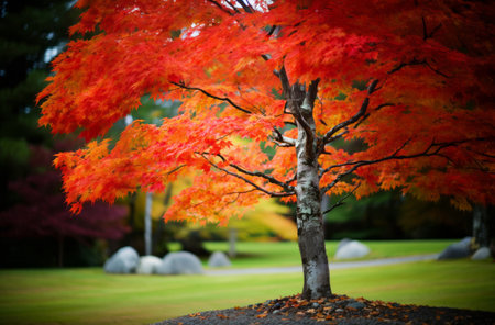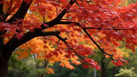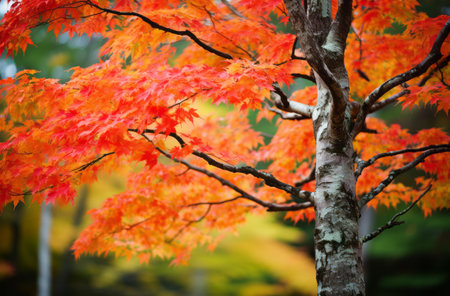 Vibrant Japanese maple tree with red and orange leaves in autumn