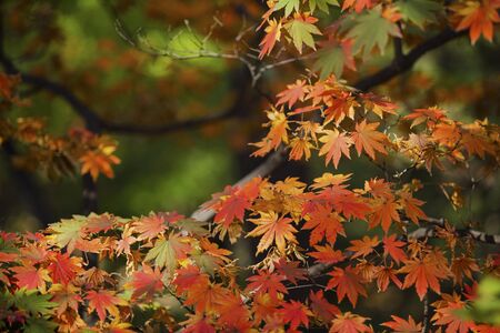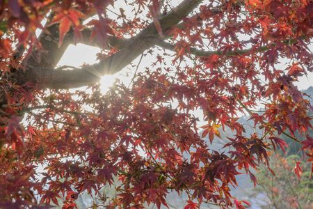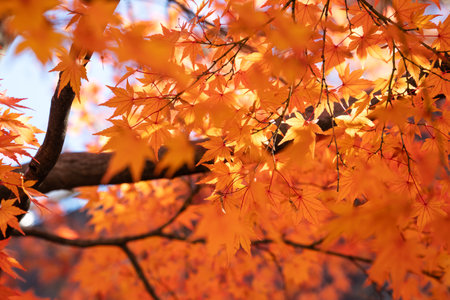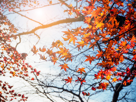 Beautiful maple leaves on the tree in autumn sunny day in Japan.