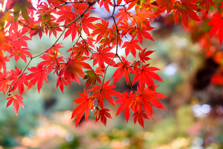 Vibrant Japanese Autumn Maple leaves with blurred background