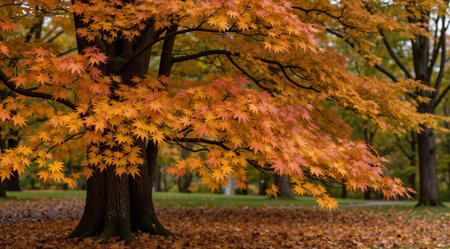 Vibrant autumn leaves create a stunning display of color in a tranquil park setting during the fall season