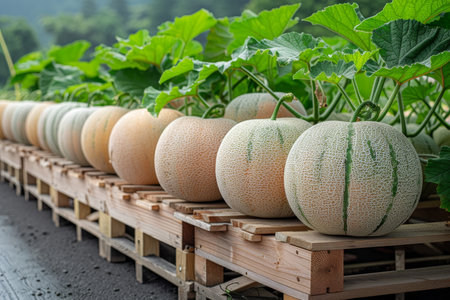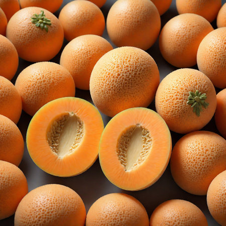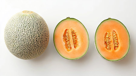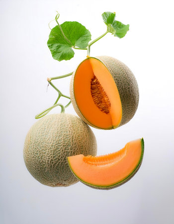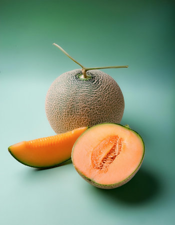 netted hokkaido melon cantaloupe illustration vibrant display, popularity fruit, sweet juicy netted hokkaido melon cantaloupe