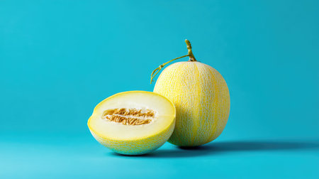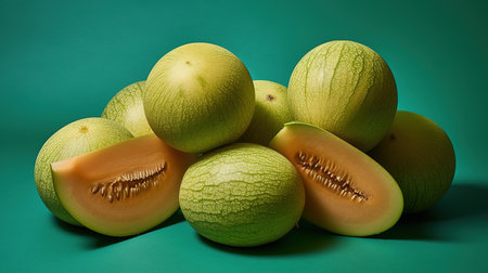 cantaloupe melon on turquoise background.
