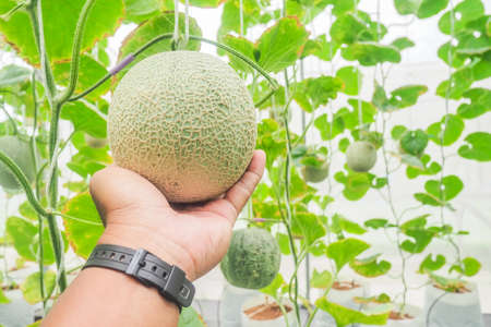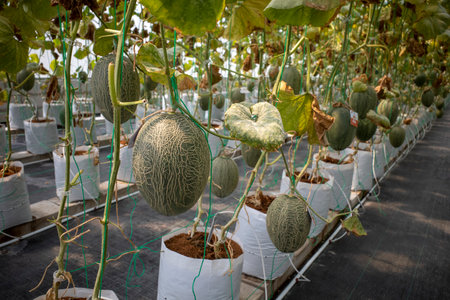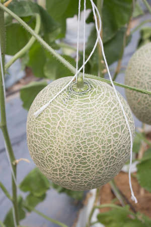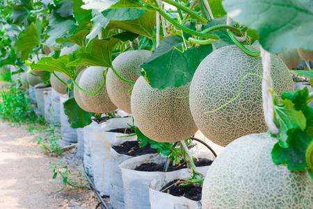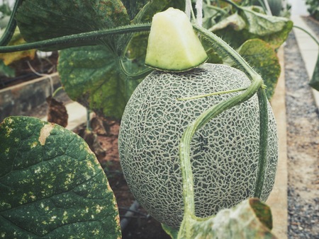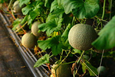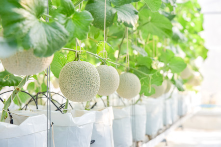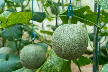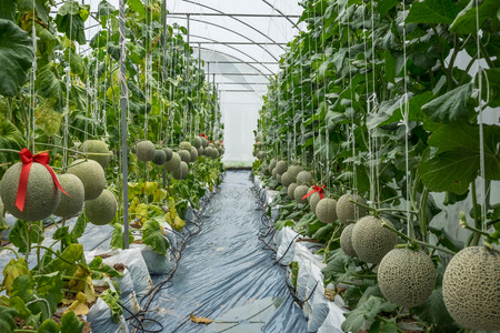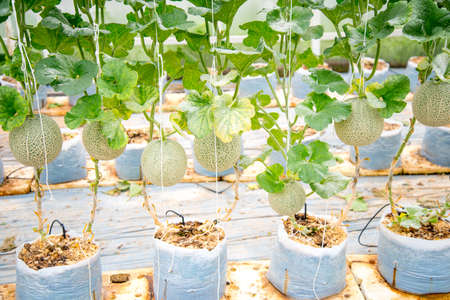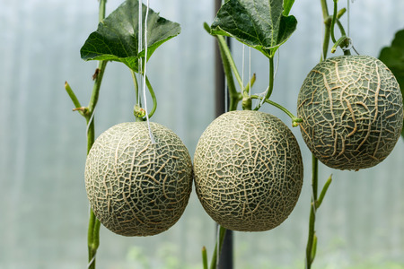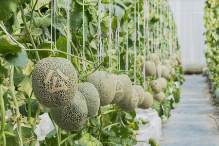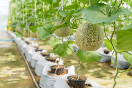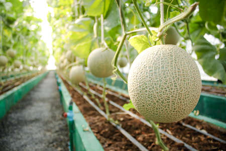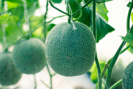 Japanese Melon in green house farm plantation