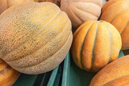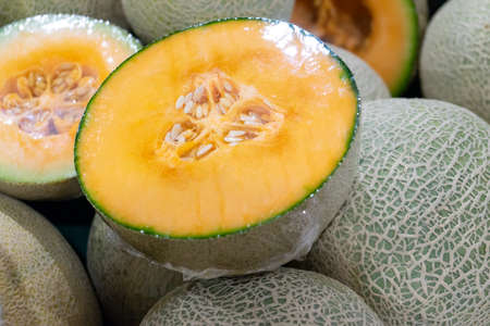 close up cantaloupe fruits or melon, preparing for sell in the market