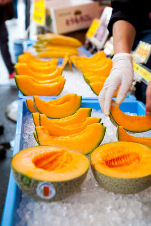 Sweet and fresh melon at seafood market in Hakodate, Hokkaido Japan