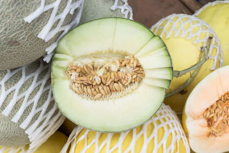 Half a melon cantaloupe in market
