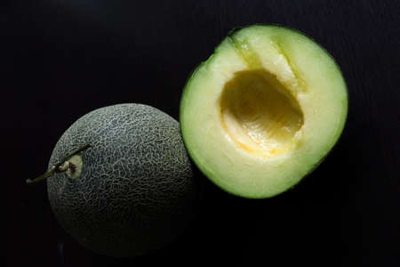 Cantaloupe melons and melons on dark background