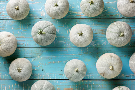 Melons on a blue rustic wooden background