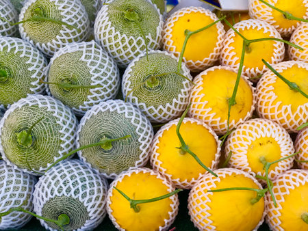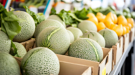 Fresh Organic Melons at Farmers Market - Vibrant Fruits Display