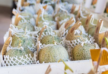 Melons on a market stall,Japanese Melon.