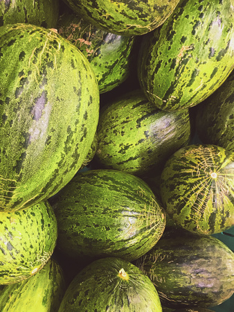 cantaloupe heap in market shelf